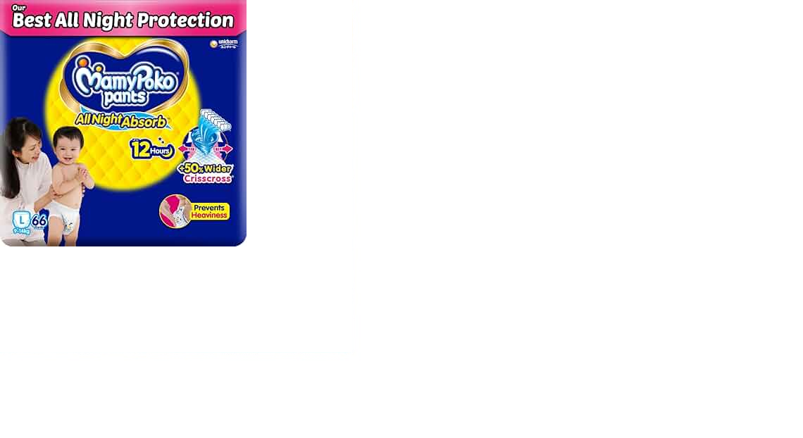 Mamypoko Pants All Night Absorb| Pant Style Baby Diapers Large Size(L), 66 Count